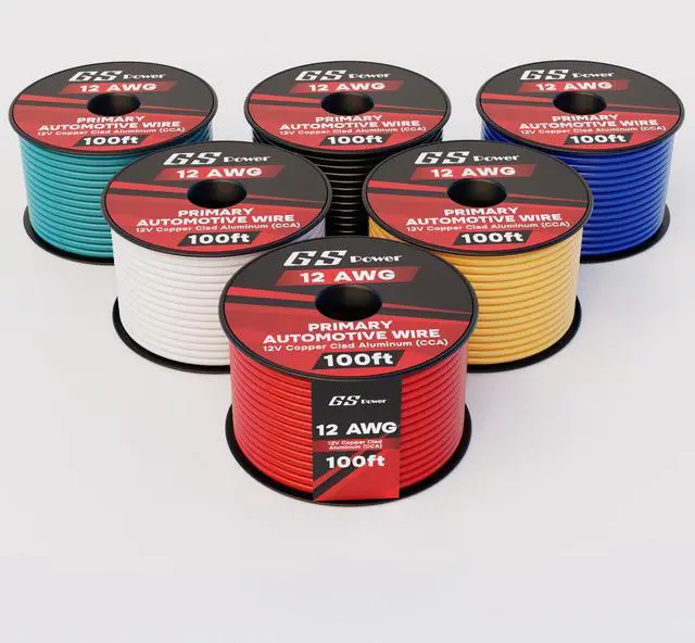 GS Power 12 Gauge Electrical Wire - 6 Pack Color Combo Low Voltage Wiring 100 Feet Per Roll, Copper Clad Aluminum Electric Wires for 12 Volt Automotive, Lighting, Trailer or Car Audio