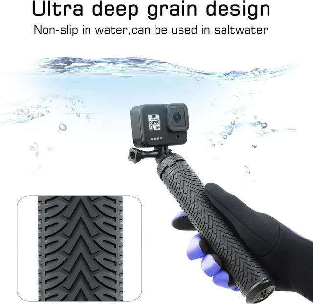 Made of High Quality Material: This waterproof selfie stick is made of high-grade aluminum. The hand grip and bottom are covered with ultra deep grain designed silicone. It not only offers premium look, lightweight and strong support, but also guarantees anti-slip under any circumstances.