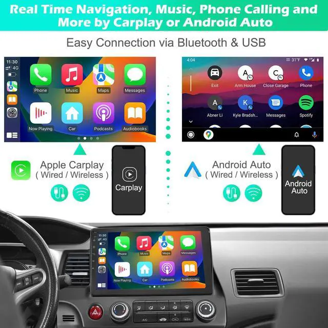 Car Stereo Radio for Honda Civic 8th 2006 2007 2008 2009 2010 2011 with CarPlay and Android Auto, Android 12 Wireless Bluetooth WiFi, 10 Inch in-Dash Touchsreen GPS Navigation 2GB + 64GB Head Unit