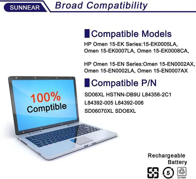 SD06XL Battery Replacement for HP Omen 15-EK 15-EN 15-EK0000 15-EK0009TX 15-EN0029NR Series Laptop HSTNN-DB9U L84356-2C1 L84392-005 L84392-006 SD06070XL SDO6XL 11.55V 70.91W h 5833mAh