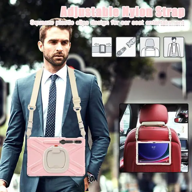 [Removable & Adjustable Shoulder Strap] Portable shoulder strap, etachable, adjustable length, It is very convenient for you to carry your tablet at work, travel or outdoors, It is also very suitable for children. You can also hang it behind the headrest of the car seat.