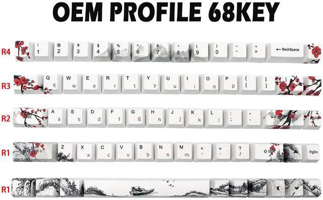 OEM Profile Keycaps This keycap set is OEM profile which is a little higher than Cherry profile. It is not easy to fatigue after long-term use and has better comfort