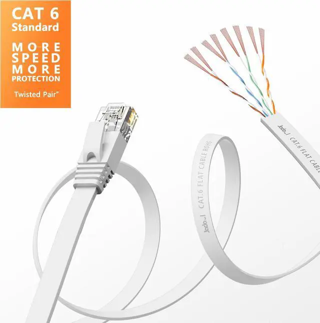 Jadaol Cat 6 Ethernet Cable 200ft ( 60.96 m), Outdoor & Indoor, 10Gbps Support Cat 8 Cat 7 Network, Long Flat Internet Lan Patch Cord, Cat6 High Speed Weatherproof Cable for Router, Modem, Switch, White