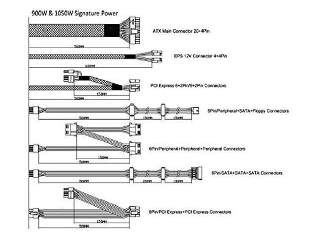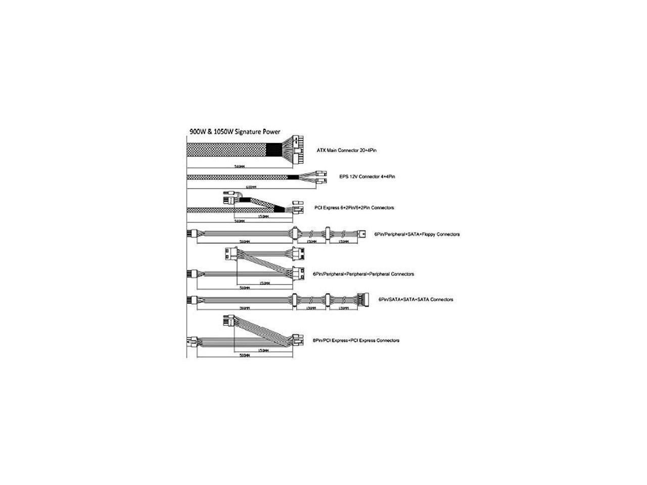 Modular Design Supports Cable Management. Connectors: 1 x 20/24pin Main Power, 1 x P8(4+4P) ESP 12V, 4 x SATA + 4 x 8(6+2)pin PCI-E, 4 x Peripheral, 1 x Floppy. Single 12V Output for Higher Power Usage.