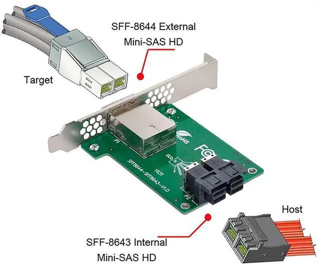 2-Ports SFF-8643 to SFF-8644 Adapter with Full PCI Slot Profile Mounting Bracket;