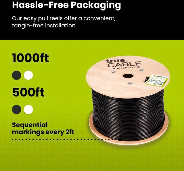 [Hassle Free Packaging] 1000 feet (305 meters) comes conveniently pre-spooled in a tangle free, easy pull box so you dont have to worry about getting behind on your next job.