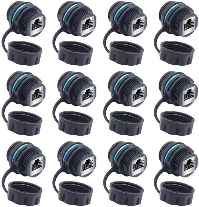 YIOVVOM RJ45 CAT6 Panel Mounting Shielded Waterproof Connector Cat5/5e/6 Female to Female 8P8C Ethernet LAN Cable Coupler Double Head Adapter with Waterproof/Dust Cap 12PCS