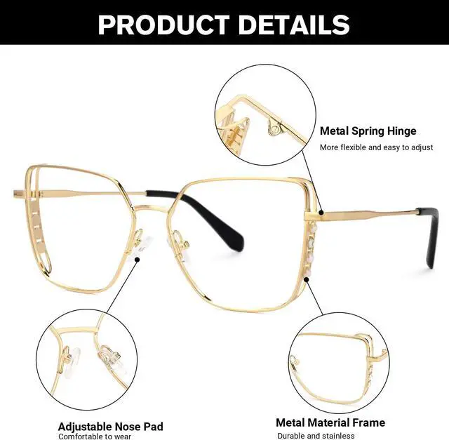 Unique Design These square glasses have pearl studded frames for a sophisticated and designer look,that makes you look both stylish and pretty. It is nice for ladies to wear it every day.