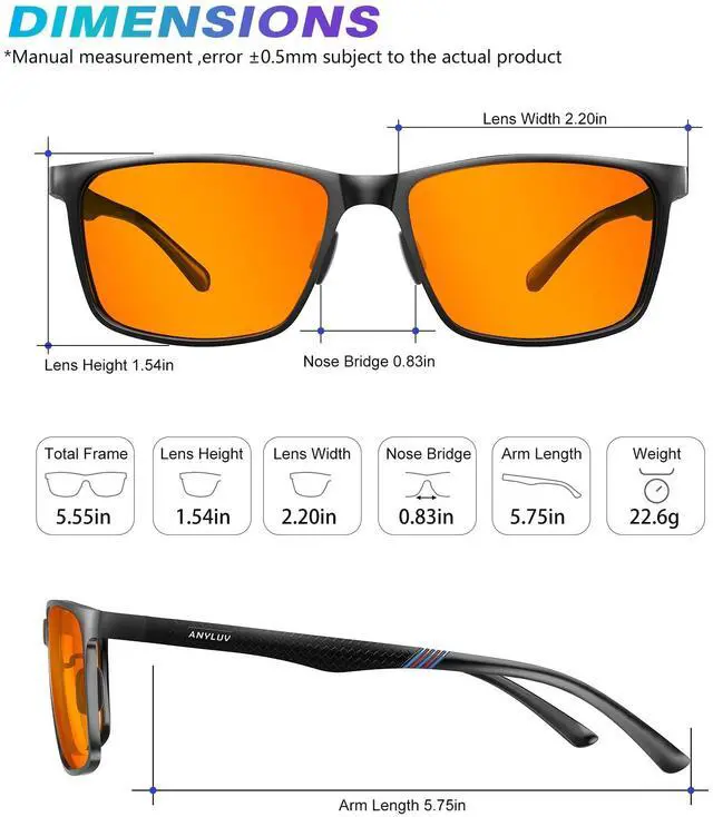 99% Blue Light Blocking Rate: These Blu-ray gaming glasses can filter out 99% of harmful blue light from computers and other devices. These gaming glasses for men are effective in relieving visual fatigue. When you're playing games on an electronic screen for a long time, these ANYLUV blue light glasses men gaming can help relax your eyes while improving your sleep quality