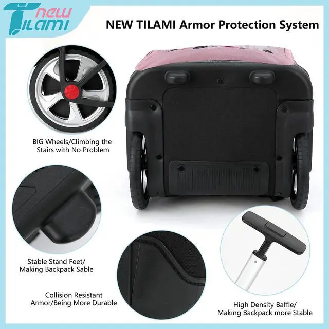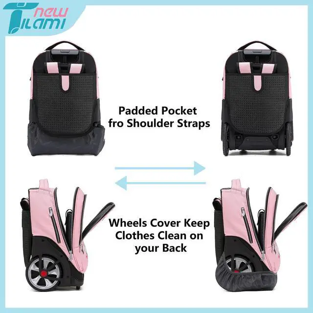 Easy Transportation: NEW TILAMI backpack with wheels comes with a sturdy handle that can be extended for effortless transportation. You can easily maneuver through crowded spaces or roll it smoothly on various surfaces.