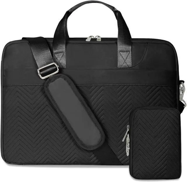 Laptop Briefcase for Women 15.6 Inch Waterproof Laptop Work Bag with Clutch Purse Computer Messenger Bag with Strap Large Capacity Business Work Travel College Bag Black