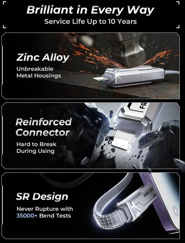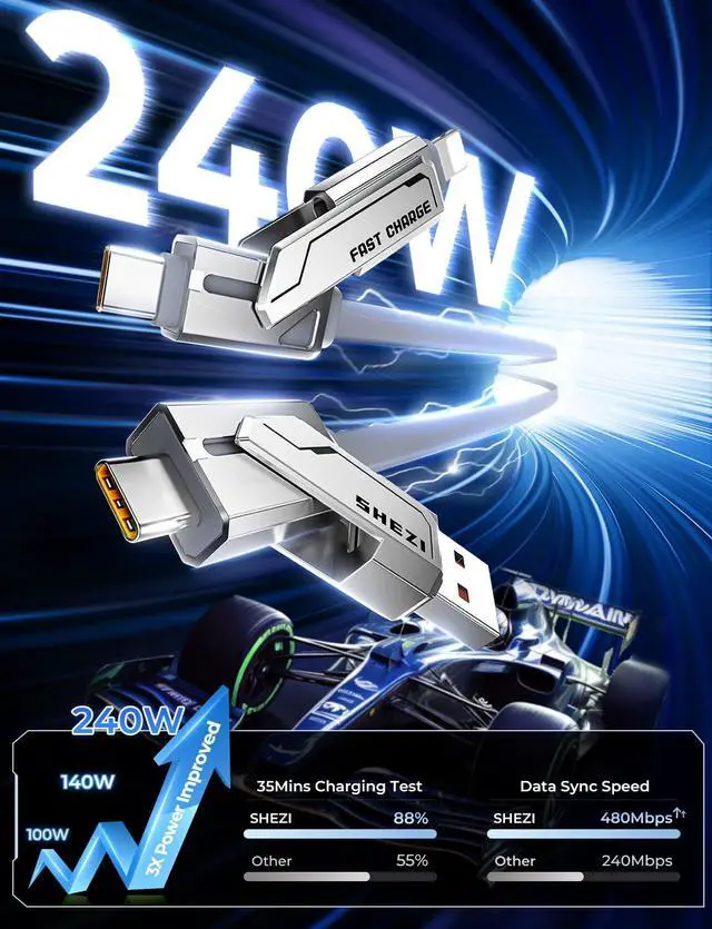 Fastest Charging in History: Our usb c charging cable can charge your device at the fastest speed. Fully charge a iPhone 15 pro to 96%, a Switch to 90%, a S23 to 96%, a MacBook Pro to 86% and an iPad Pro to 89% in 35 minutes. NOTE: Please use a charger with the corresponding wattage or higher that our product could output maximum power.