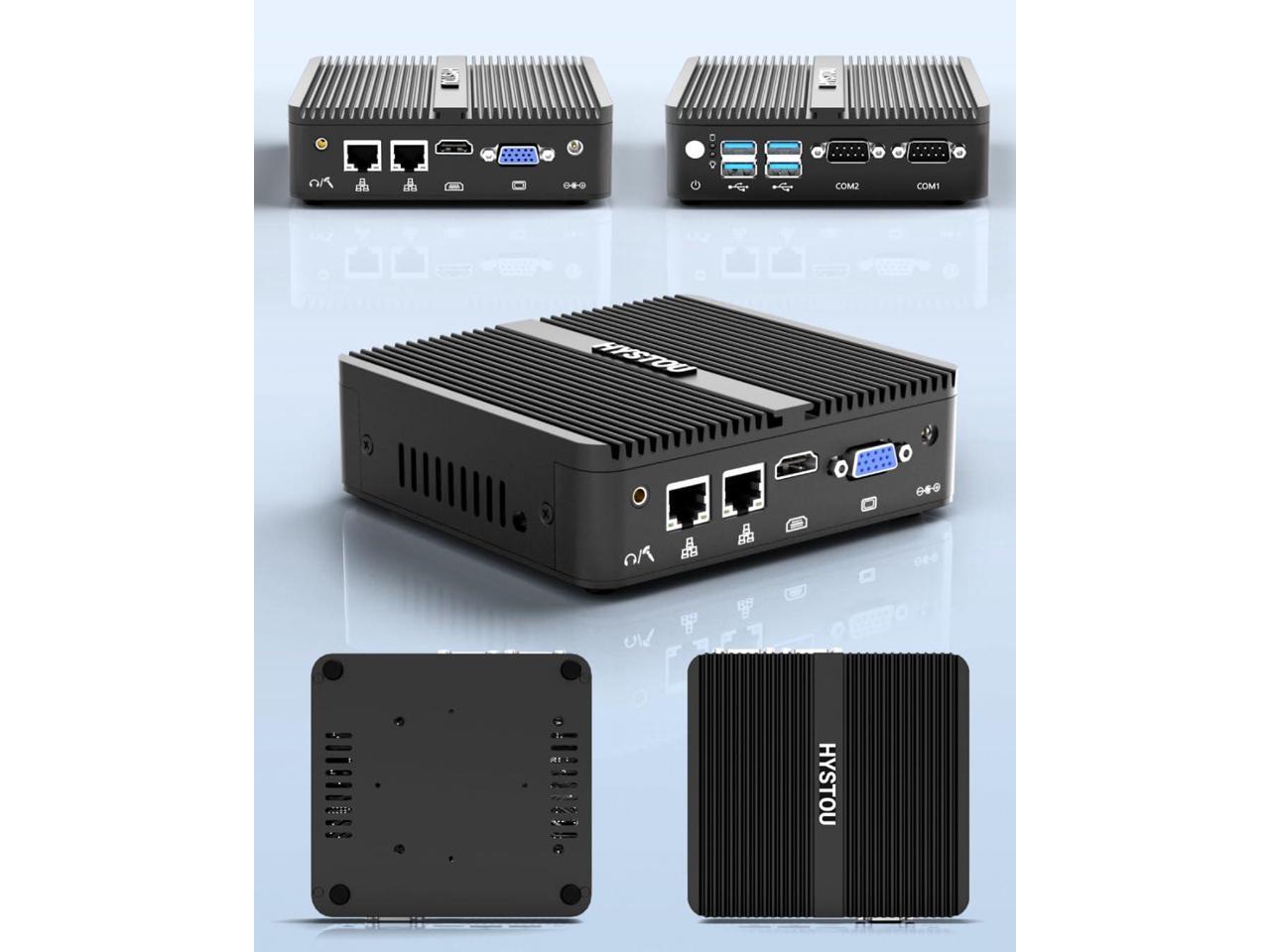 HYSTOU Mini PC Fanless Industrial: 8GB Ram DDR4 256GB SSD Micro Computer Celeron J4125 Dual LAN Mini Desktop PC Windows 10 Pro with Dual Band WiFi Bluetooth