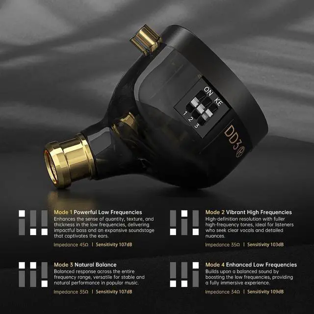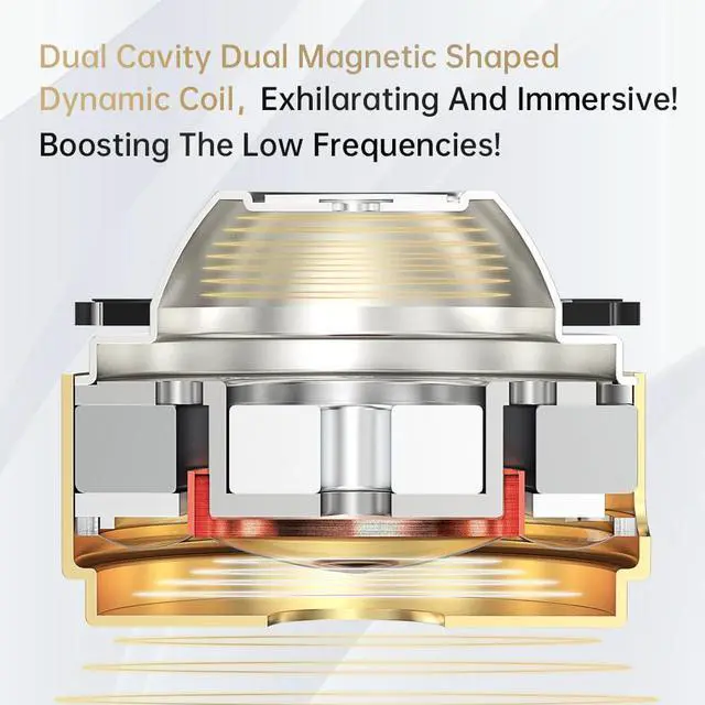 Drive unit: 10mm Shaped Dual Magnetic Dual Cavity Dynamic CoilCavity material: CNC Aluminum Alloy +