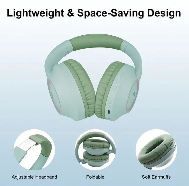 Lightweight & Foldable:This wireless foldable headset weighs only 200g, convenient for you to carry around. It is the first choice for home office, traveling or studying. This bluetooth headphone can also easily adjus