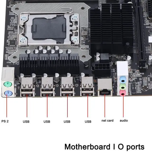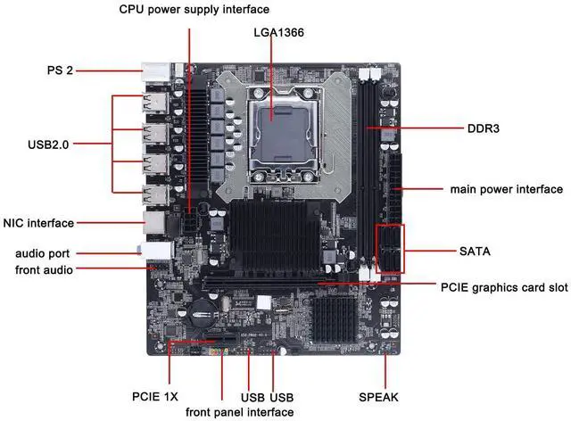 X58 Motherboard, 2×DDR3 DIMM CPU slot LGA 1366 Gaming Motherboard, USB2.0 SATA Port PCB Motherboard Support ECC Memory, One 8 Pin Power Socket, One 24 Pin Power Connector