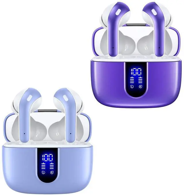 TAGRY 2 Sets X08 Purple and Phantom Purple Bluetooth Headphones True Wireless Earbuds 60H Playback Ear Buds with Wireless Charging Case in-Ear Earbuds with Mic