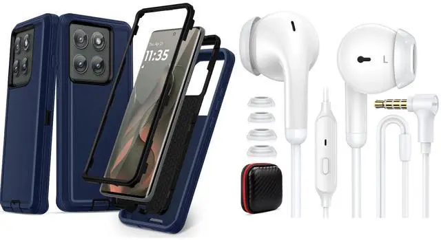 TOPAUX for Moto Edge 2025 Case Multi-Layer Heavy Duty Full Body Drop Protection Impact Resistant Soft Skin Anti-Shock Protective Hard Shell, 3.5 mm Wired Earbud in-Ear Headphone with Mic