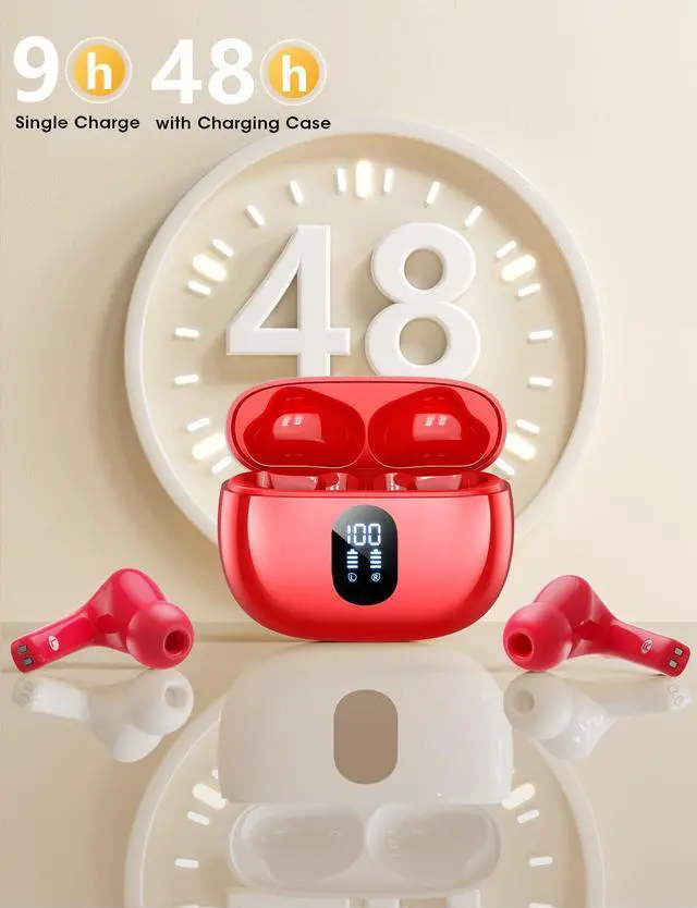 T18 Wireless Earbuds - 48 Hours Battery Life for Uninterrupted Listening: Extend your listening time with the T18 wireless earbuds, which offer up to 9 hours of playback on a single charge. When paired with the LED display charging case, you can enjoy up to 48 hours of battery life. Additionally, the dual LED digital power display shows the remaining battery life of the case and the charging status of the earbuds, allowing you to monitor the power levels in real time and efficiently plan your usage