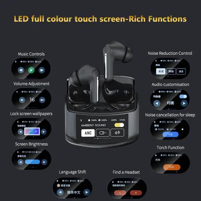 1 Pair Touchscreen Earbuds with Smart screen Charging Case
