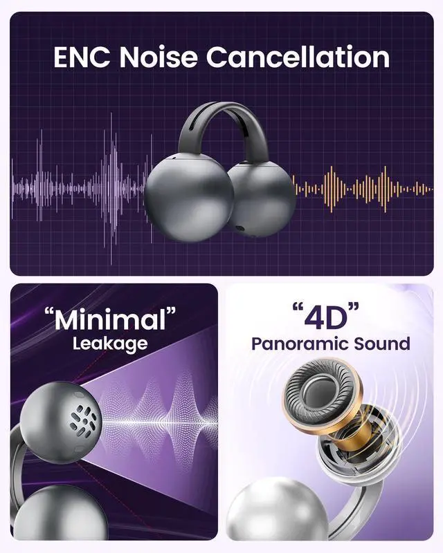 All-Day Battery: Equipped with a Bluetooth 5.4 for ultra-low power consumption, StarClip delivers up to 32 hours of uninterrupted playtime with the charging case. Enjoy non-stop music, all day and night