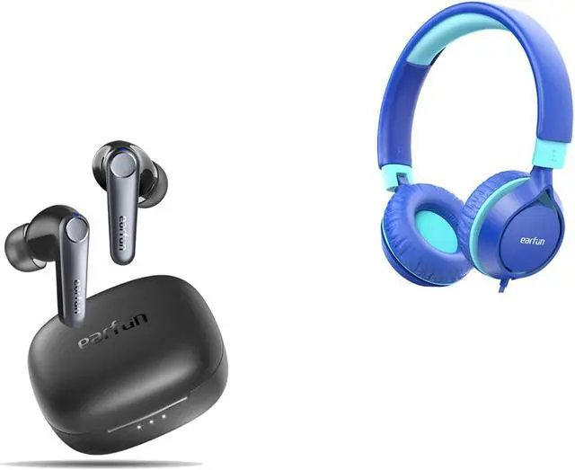 EarFun Air Pro 3 Noise Cancelling Earbuds, Qualcomm® aptX Adaptive Sound, 6 Mics CVC 8.0 ENC S1 Kids Headphones, Foldable Wired Headphones for Kids, 85dB Volume Limit