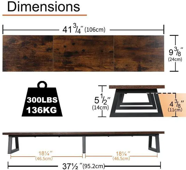 Sturdy and High QualityThis desk shelf built with heavy-duty steel and premium MDF wood - holds up to 300Ibs. Features anti-wobble crossbars & anti-skid rubber pads, this dual monitor shelf offers exceptional stability for 2 monitors or heavy setups.