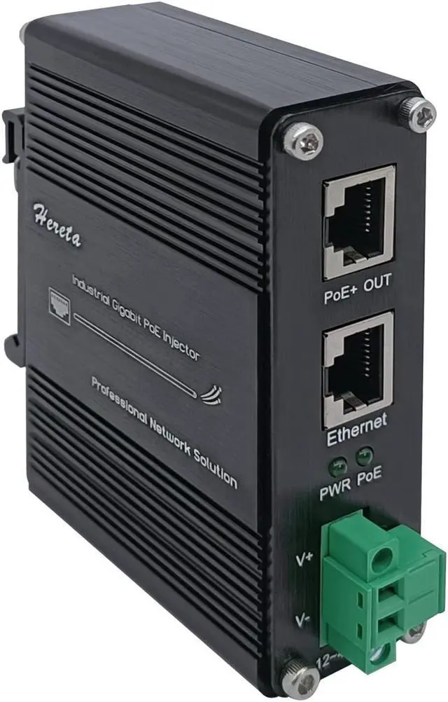 Hardened Industrial Gigabit PoE+ Injector 12-48VDC Input with DIN-Rail and Wall Mount Connecting The IEEE 802.3 af/at PoE Device (30W)
