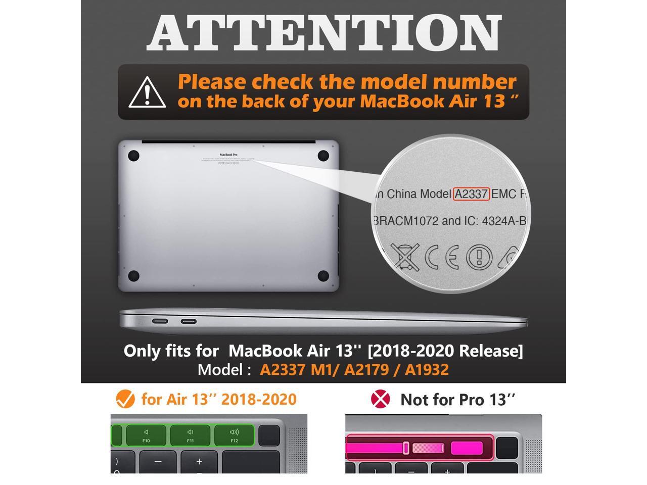 - Compatibility: Exclusively designed Case for MacBook Air 13 inch (2020/2019/2018 Release), Model: A2337 M1/ A2179 / A1932. Will NOT fit for MacBook Air 13.6/Pro 13. Please kindly confirm the model before purchase