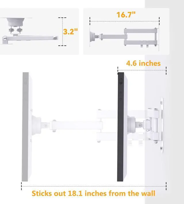 SPACE SAVING. The fully folded bracket sits 3 inches from the wall, which can minimize the wall space. Mount your echo show 15 display to the wall and clear-up the desktop space