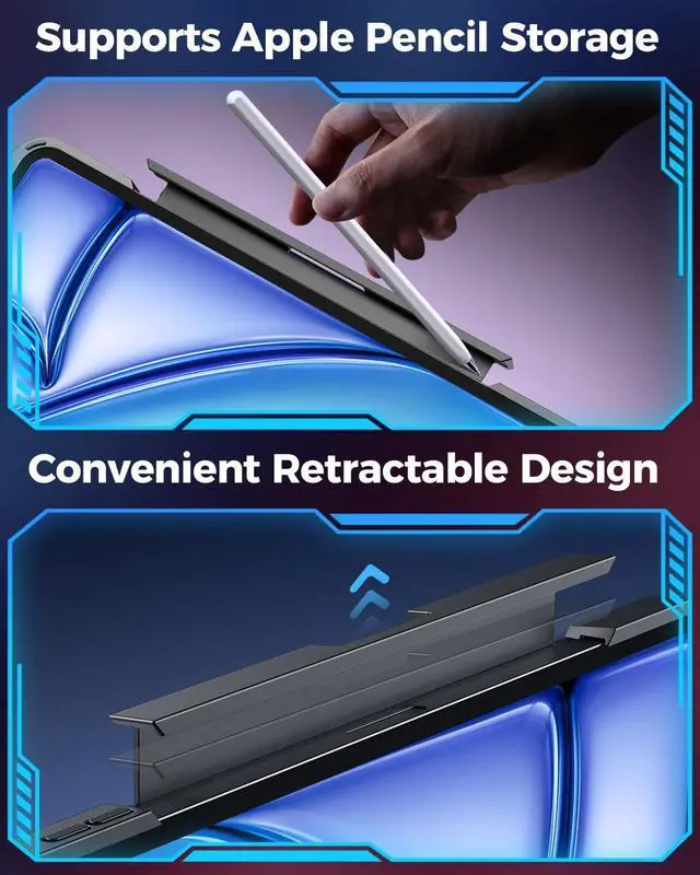 360° Rotating Stand & Multi-Angle Viewing: Experience ultimate flexibility with the 360° swivel stand, offering five adjustable viewing angles. Whether youre typing, sketching, or streaming, effortlessly adjust your iPad for optimal comfort and productivity in any scenario