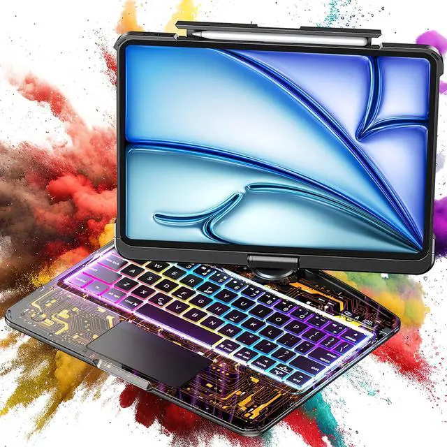 Clear Keyboard Case for iPad Air 11 Inch (M3/M2, 2025/2024)/ iPad Air 5th/4th Generation 10.9" 2022 2020/ iPad Pro 11" 1/2/3/4 2018-2022, Trackpad, Pencil Holder, 7-Color Backlit, Rotatable, Black