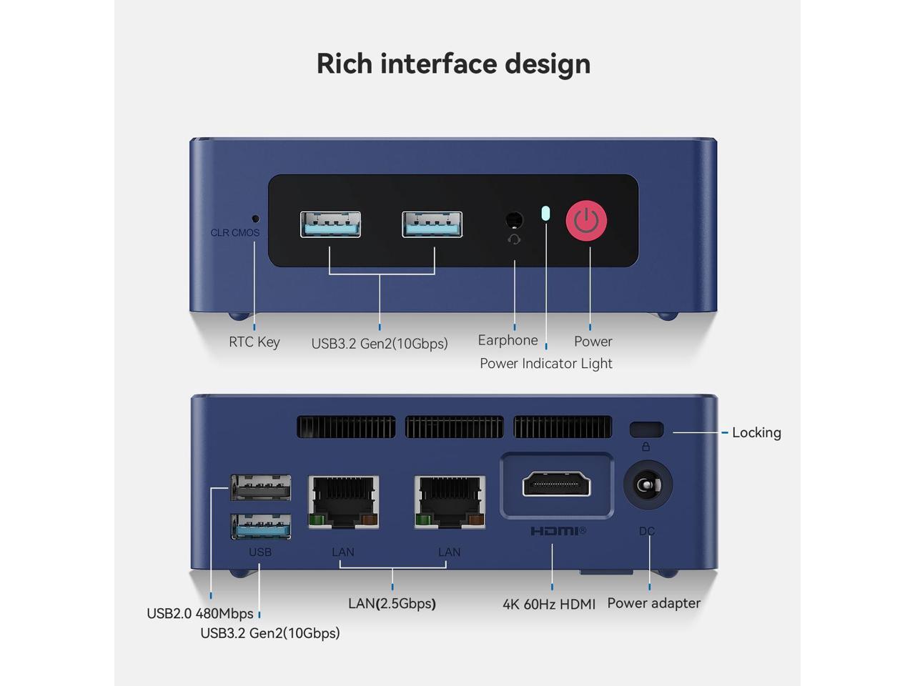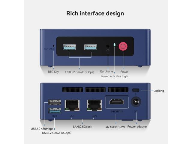 - Efficient Heat Dissipation & Multi-interfacesBeelink MINI S13 built-in fantastic cooling fan, heat sink, and hard drive cooler help cool down the hardware and reduce hardware loss, delivering faster response speed. Mini Computer features a variety of interfaces design (3*USB3.2 Gen2 10Gbps, 1*USB 2.0, 1*HDMI 4K 60Hz, 2*RJ45 2.5G LAN, 1*Audio Jack, 1*DC Jack), easily meet office business needs, home audio and video needs.
