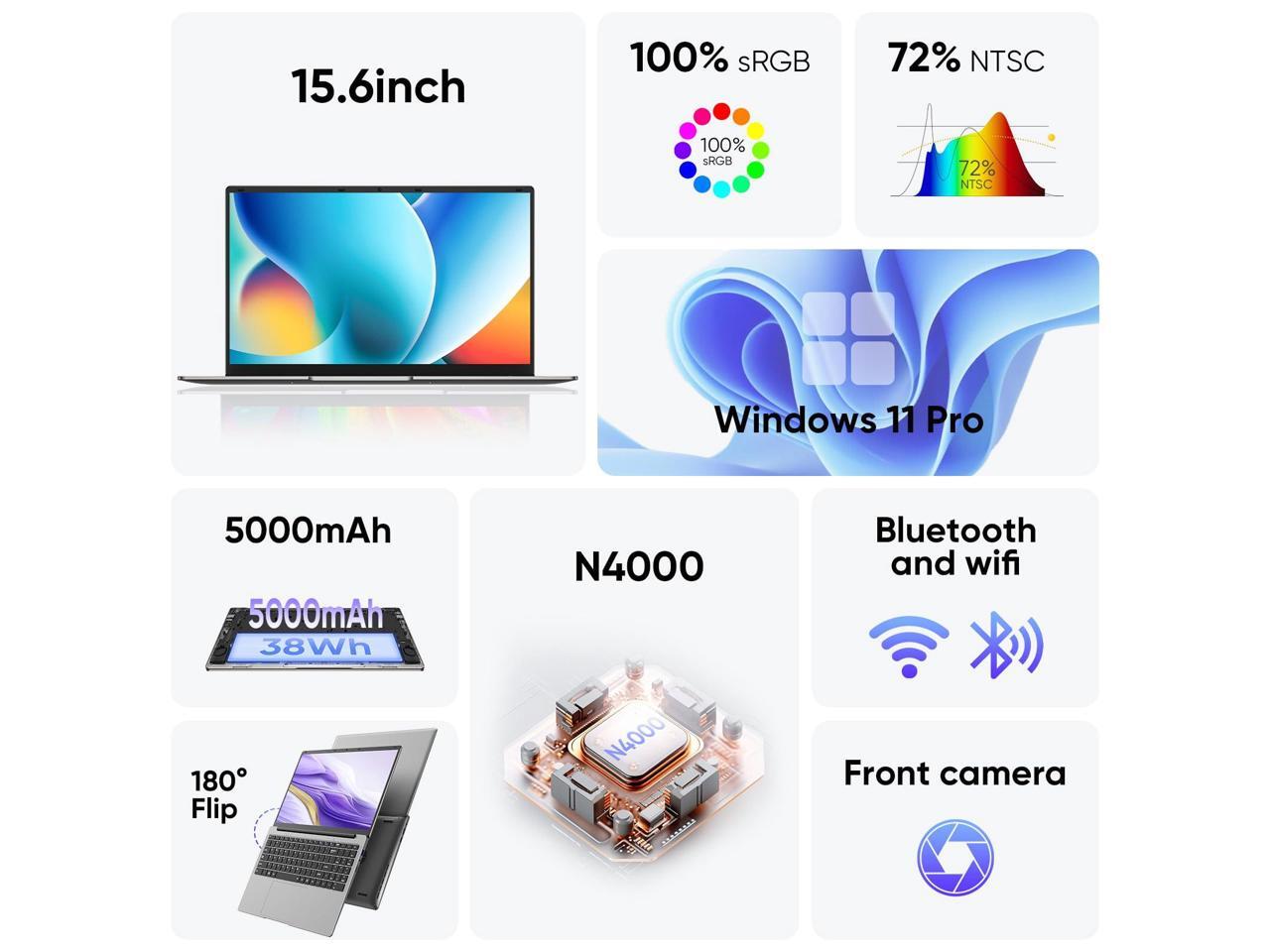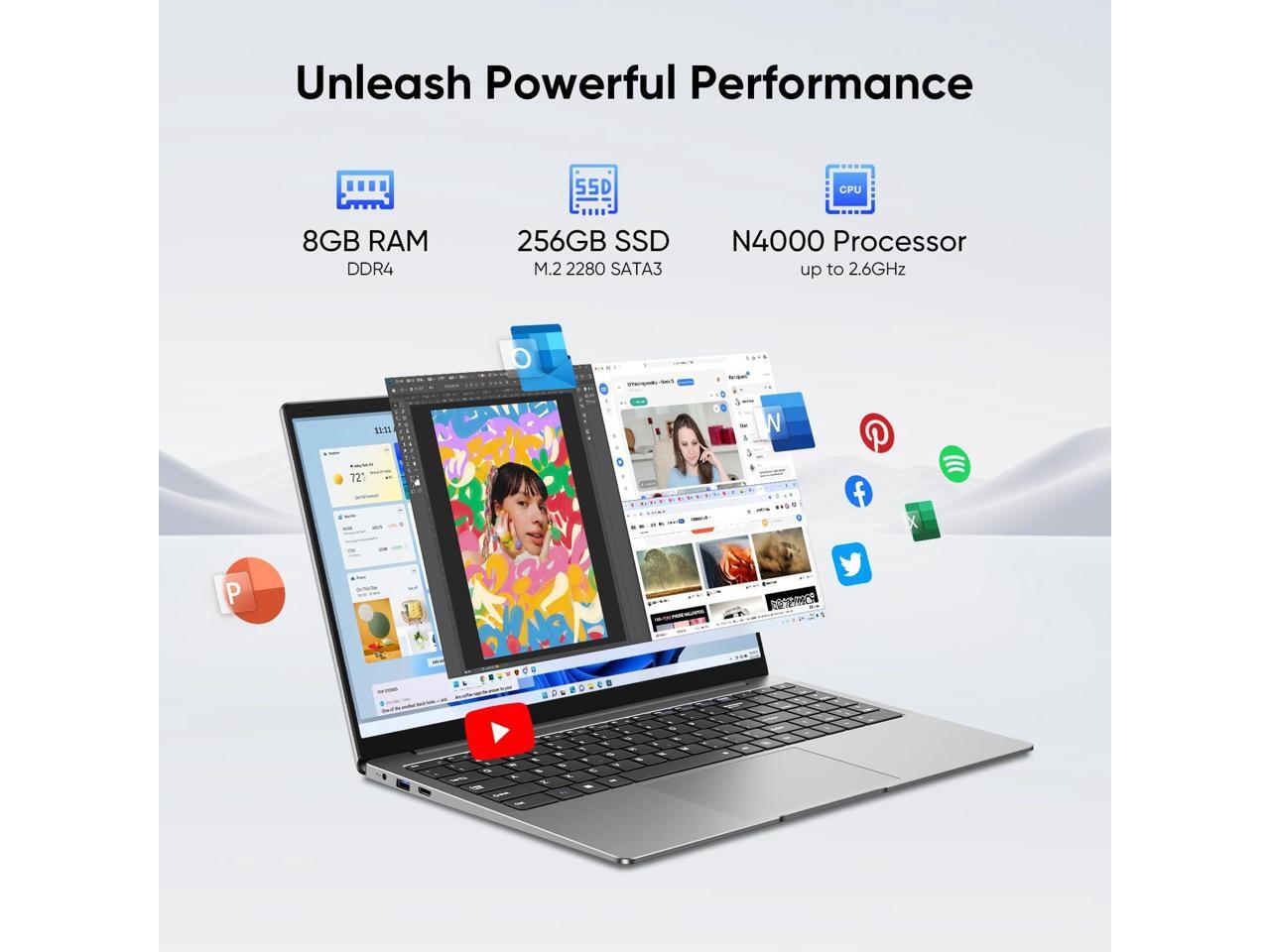 EYY 15.6" Laptop Computer, Laptops with 8GB RAM 256GB SSD, 100% sRGB Screen, Celeron N4000 Processor(up to 2.6GHz) Notebook, Ms Office 2024Dual Band WiFiBT 4.2HDMIWindows 11 ProLong Battery Life