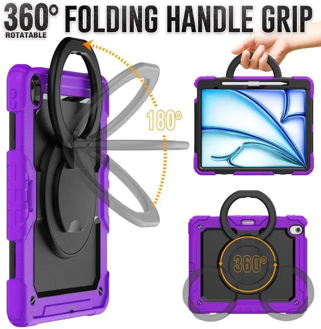 ZSLVPN for iPad Air 13 Inch Case M3 2025 / M2 2024, Heavy Duty Shockproof Protective iPad Air 13 Case with Rotating Handle & Stand- Shoulder Strap- Screen Protector- Pencil Holder, Purple