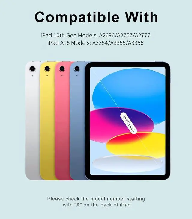 Fit for iPad 11th/10th generationSZPSGC keyboard case is specifically designed for Apple iPad (A16)11th generation 11 inch 2025 (models: A3354/A3355/A3356), and iPad 10th generation 10.9 inch 2022 (models: A2696/A2757/A2777). Note: Not be compatible with any other model of iPad. Before purchasing, please check the model number "AXXXX" on the bottom of the back of the iPad to confirm if the size of the iPad is correct