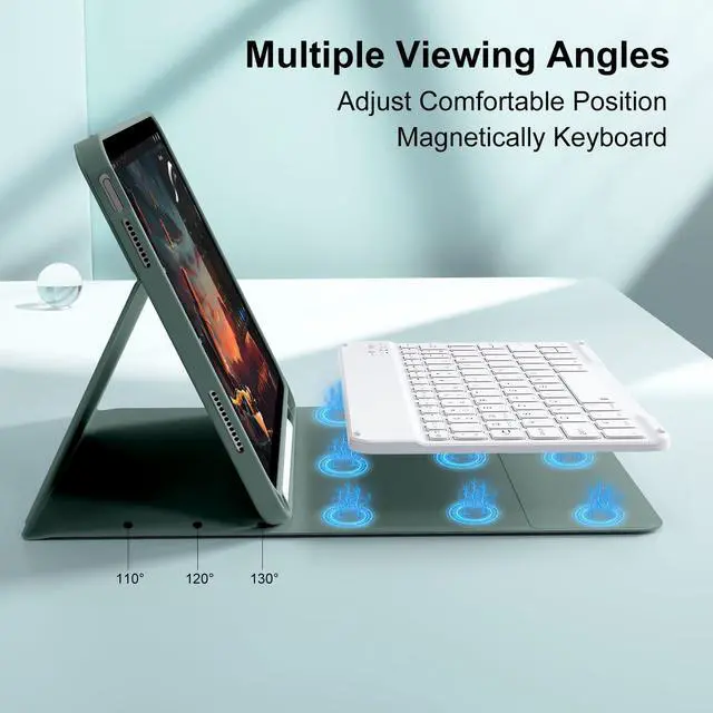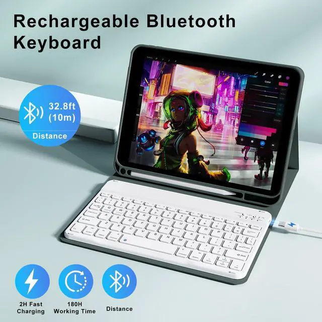 Detachable Bluetooth KeyboardThis iPad 11th/10th gen case with keyboard supports bluetooth connection to your iPad 11th/10th generation without the need for extra cable devices, providing you with ultimate convenience. The iPad 11/10 case keyboard has a quiet and smooth touch, providing you with a comfortable typing experience. Improve productivity while browsing web pages, editing documents, transferring videos, and more, turning your 11 inch/ 10.9 inch iPad into a laptop in seconds