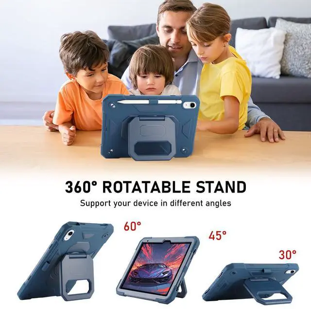 360°Rotating/Foldable Kickstand Built-in Pencil holderRotatable kickstand easily support your iPad 10.9 inch case in landscape mode or portrait, offering a perfectly convenient use experience for film watching, working and typing. The stand provides stabilizing support on various surfaces.