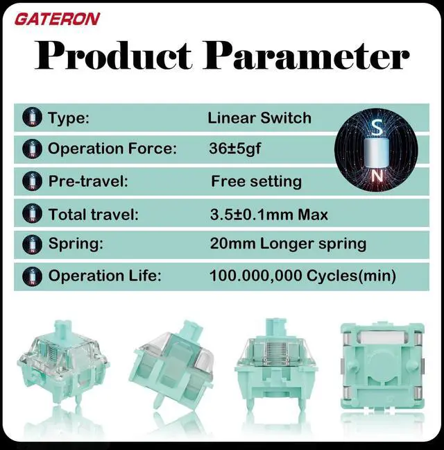 [Keyboard Switches] GATERON Magnetic Emperor Keyboard SwitchesAdopts Rare Earth Permanent Magnet MaterialsIncorporates Special Precious Metal Casting,Featuring Strong Magnetic Remanence