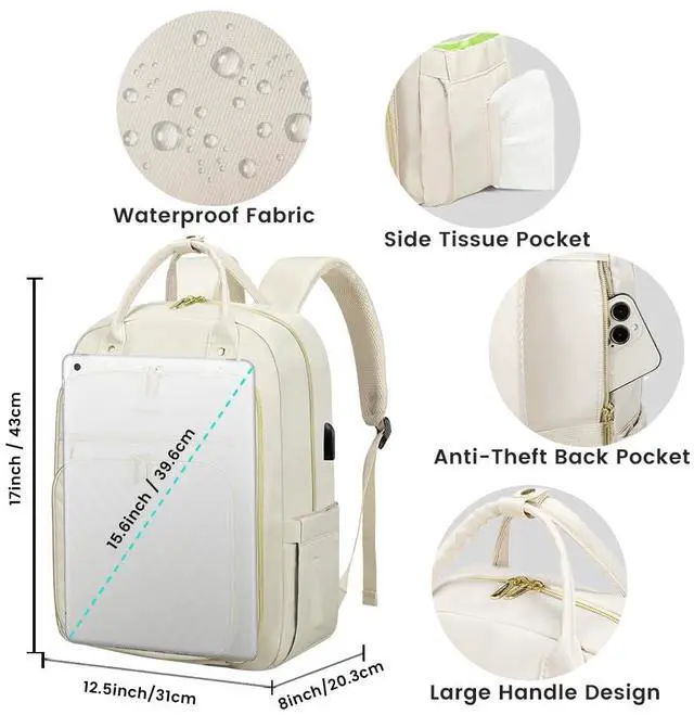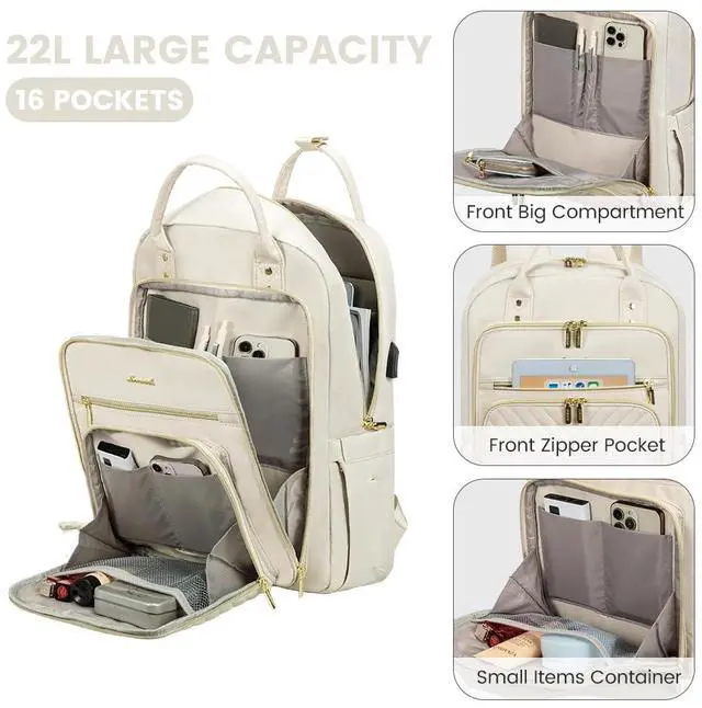 LOVEVOOK 15.6 Inch Laptop Backpack for Women, Fashion Work Travel Backpack, Waterproof Day Pack Purse for Teacher Beige