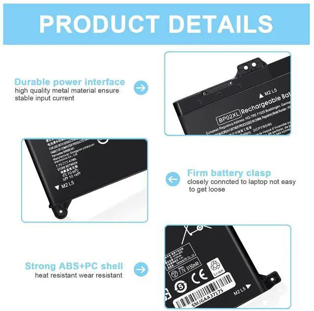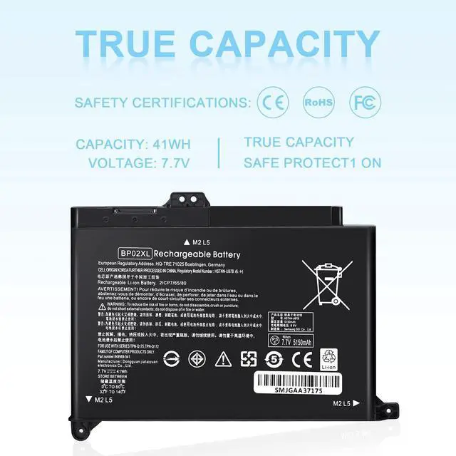 • Specification: BP02XL BPO2XL BP02041XL Rechargeable Battery; Li-ion Capacity: 41 Wh; Voltage: 7.7V. 100% New; 100% Original.