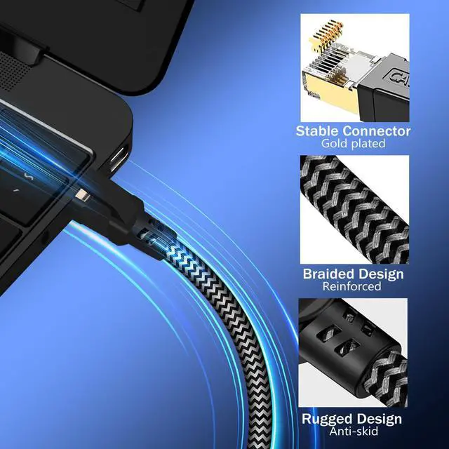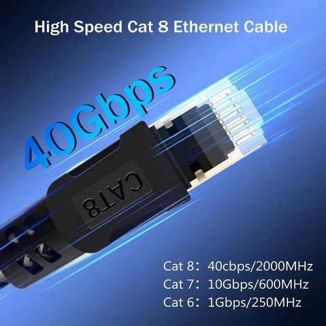 40Gbps 2000Mhz High Speed: The Cat 8 ethernet cable supports bandwidth up to 2000MHz and 40Gbps data transmission speed, ensuring stable network speed for you to online gaming, surf the Internet, online HD video streaming, upload, download, and more.