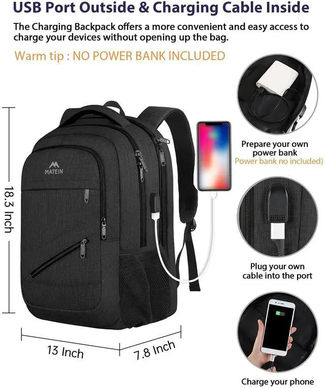 USB Charging Port and Luggage Sleeve: 17 inch sturdy computer backpack for men with external USB charger port and built-in charging cable can conveniently charge your cell phone, tablet and other electronic devices while walking. Featuring the trolley belt on its breatha