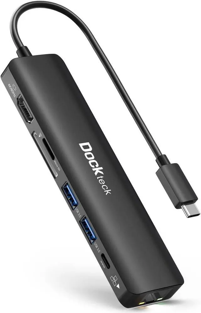 USB C Hub 4K 60Hz, Dockteck 7-in-1 USB C PD Ethernet Hub Dongle with 4K 60Hz HDMI, 1Gbps Ethernet, 100W PD, 2 USB 3.0, SD/Micro SD for MacBook Air/Pro M1 2020, iPad Pro 2021, iPad mini 6 and More