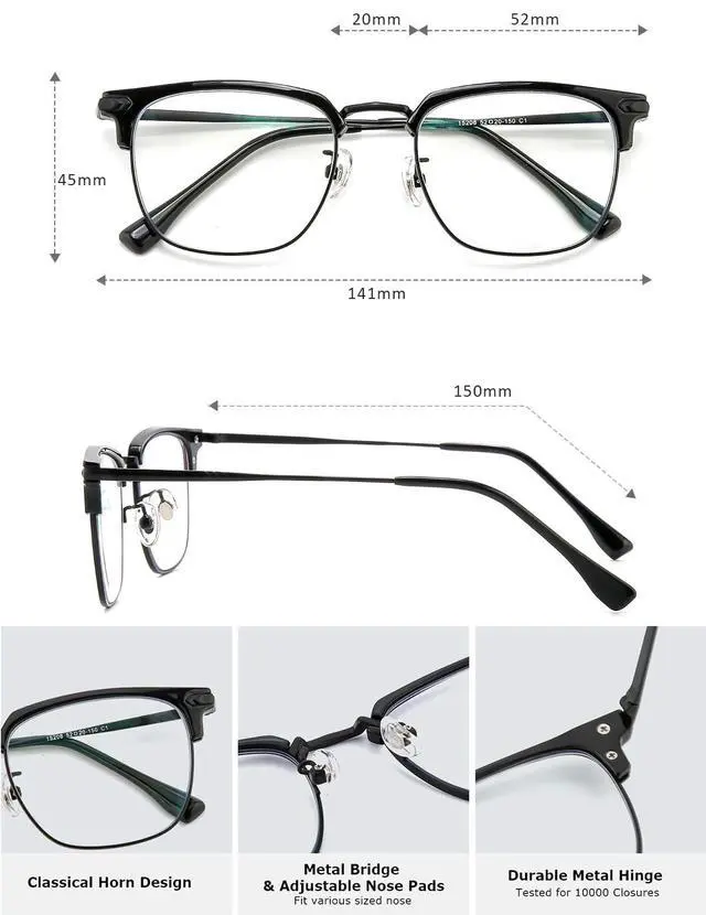 ZanyLen Blue Light Blocking Glasses for Men Metal Browline Computer Gaming Glasses Filter Blue Ray (Black Frame)