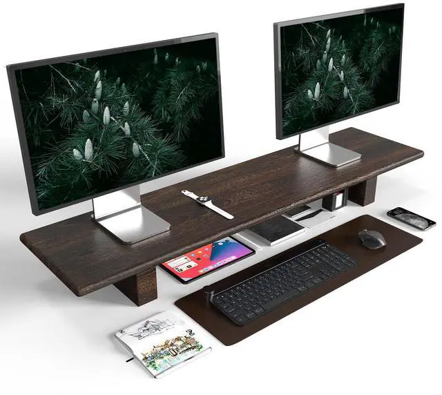 STRONG STABILITYThis monitor stand riser has fixers on both sides, the dual monitor stand can not slide out when you change the angle, and there are metal supports on both sides to protect the safety of the monitor.High-quality wood makes it more stable.