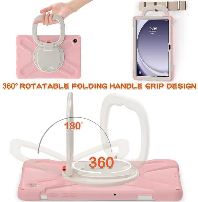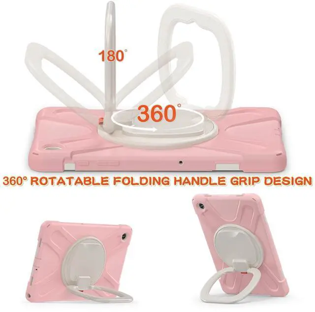 [Multi-Function Features] 360°rotating +180°folding grip can be used as a handle, easy to hang your Tablet in kitchen, washroom, bedroom; Kickstand is stable enough to stand on different surfaces for children to view.