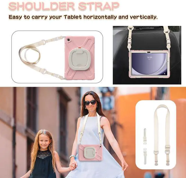 [Removable & Adjustable Shoulder Strap] Portable shoulder strap, etachable, adjustable length, It is very convenient for you to carry your tablet at work, travel or outdoors, It is also very suitable for children. You can also hang it behind the headrest of the car seat.