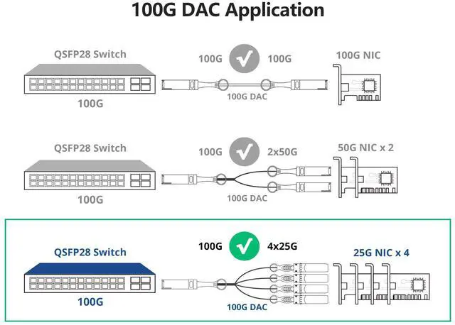 For Cisco QSFP-4SFP25G-CU1M QSFP28 to 4xSFP28 DAC, Passive, 100Gb/s, 1-meter.
