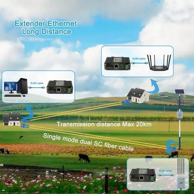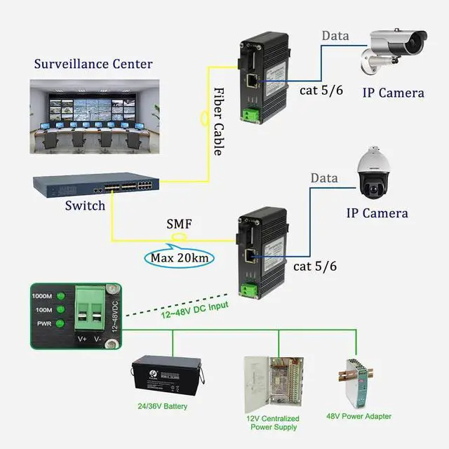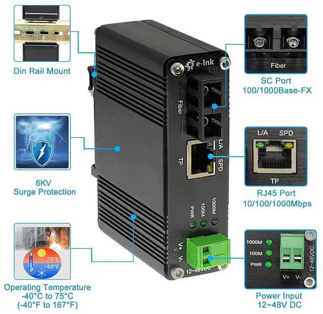 Steloproad Mini Industrial Gigabit Media Converter Hardened 10/100/1000Mbps RJ45 Ethernet Optical Transceiver with 100/1000Base-FX SC Port Auto Detection Up to 20km Over Single Mode Fiber 12~48V DC